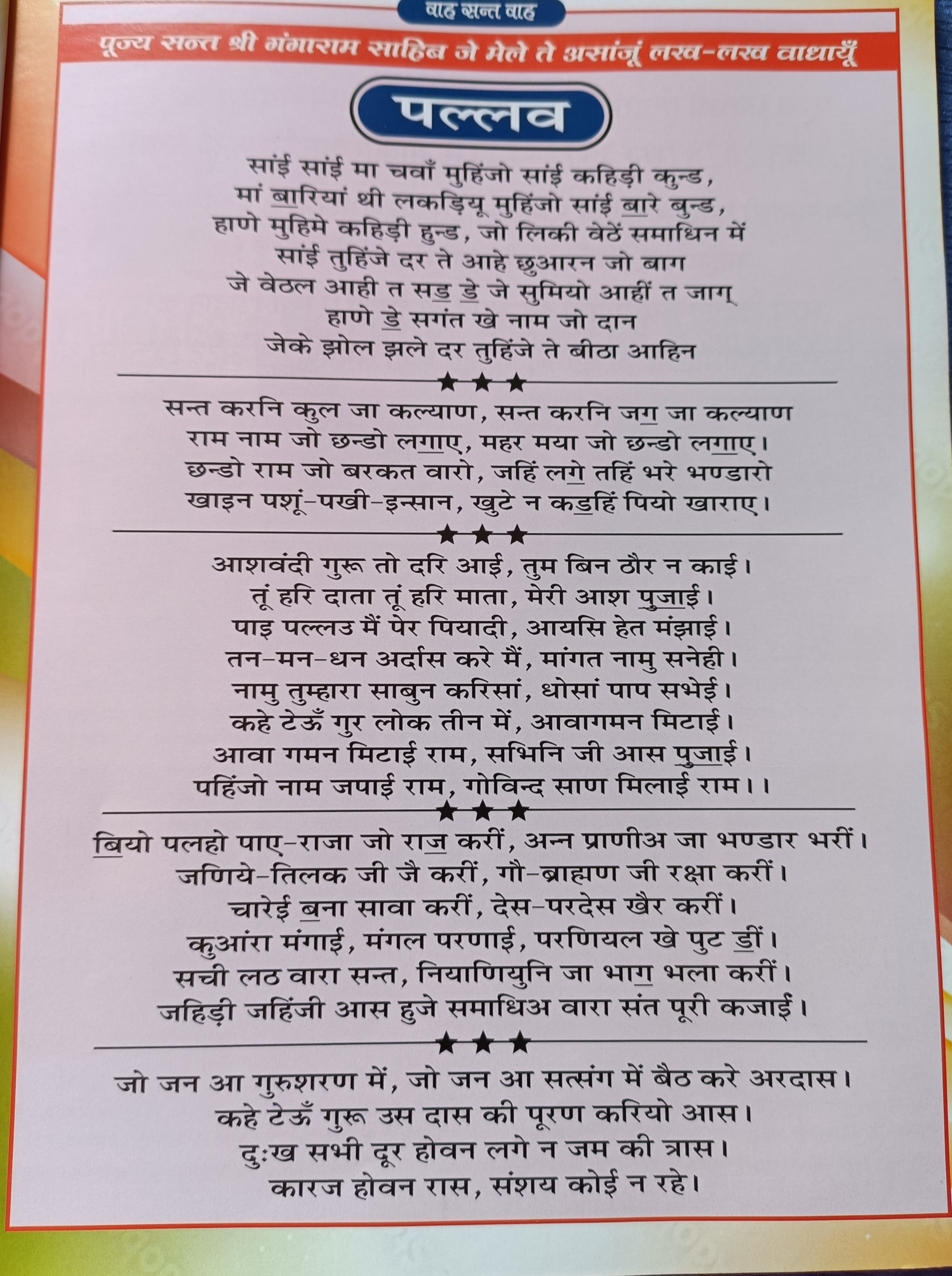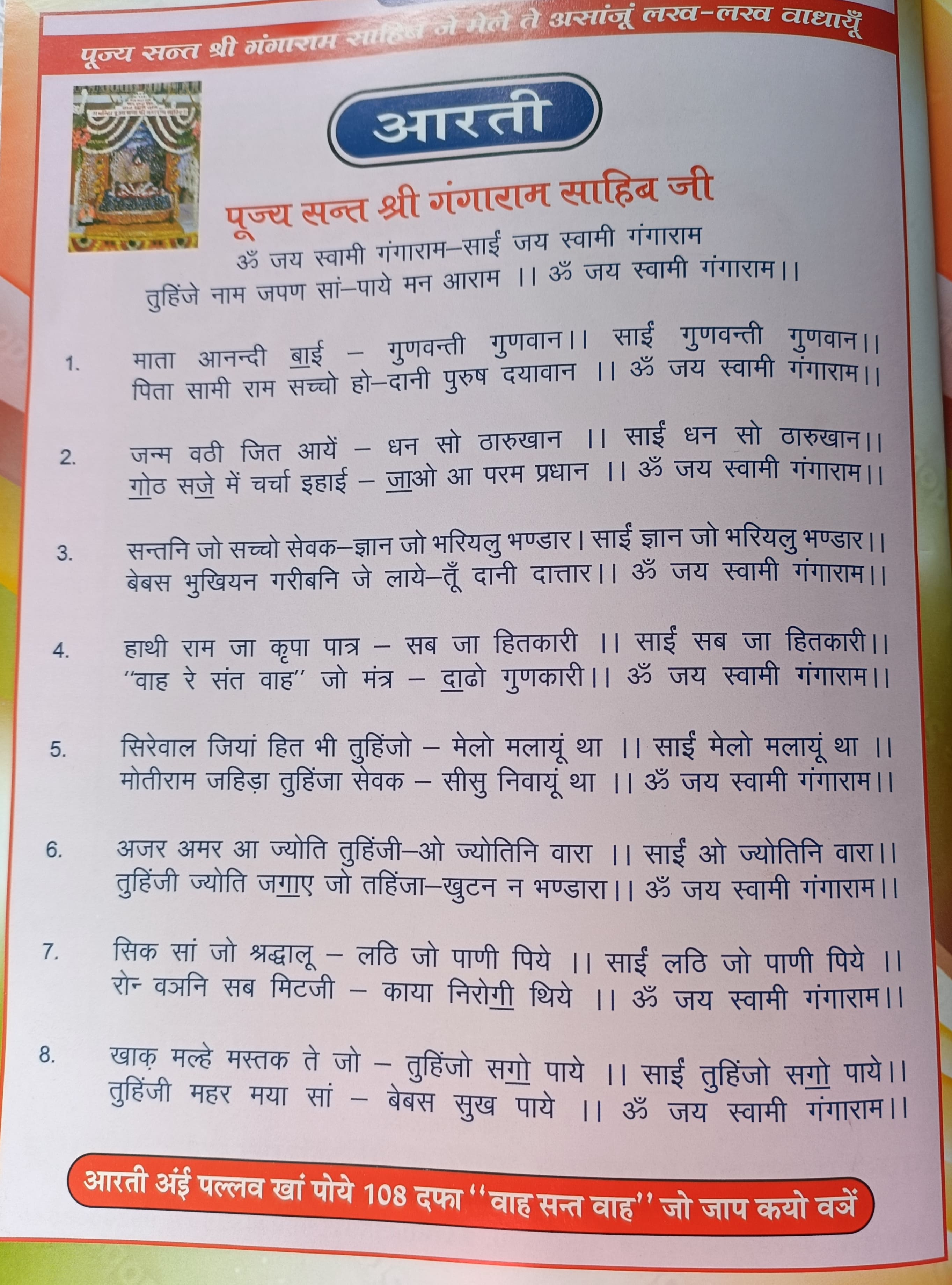 पूज्य सन्त श्री गंगाराम साहिब जे मेले ते असांजू लख लख वाधायूँ