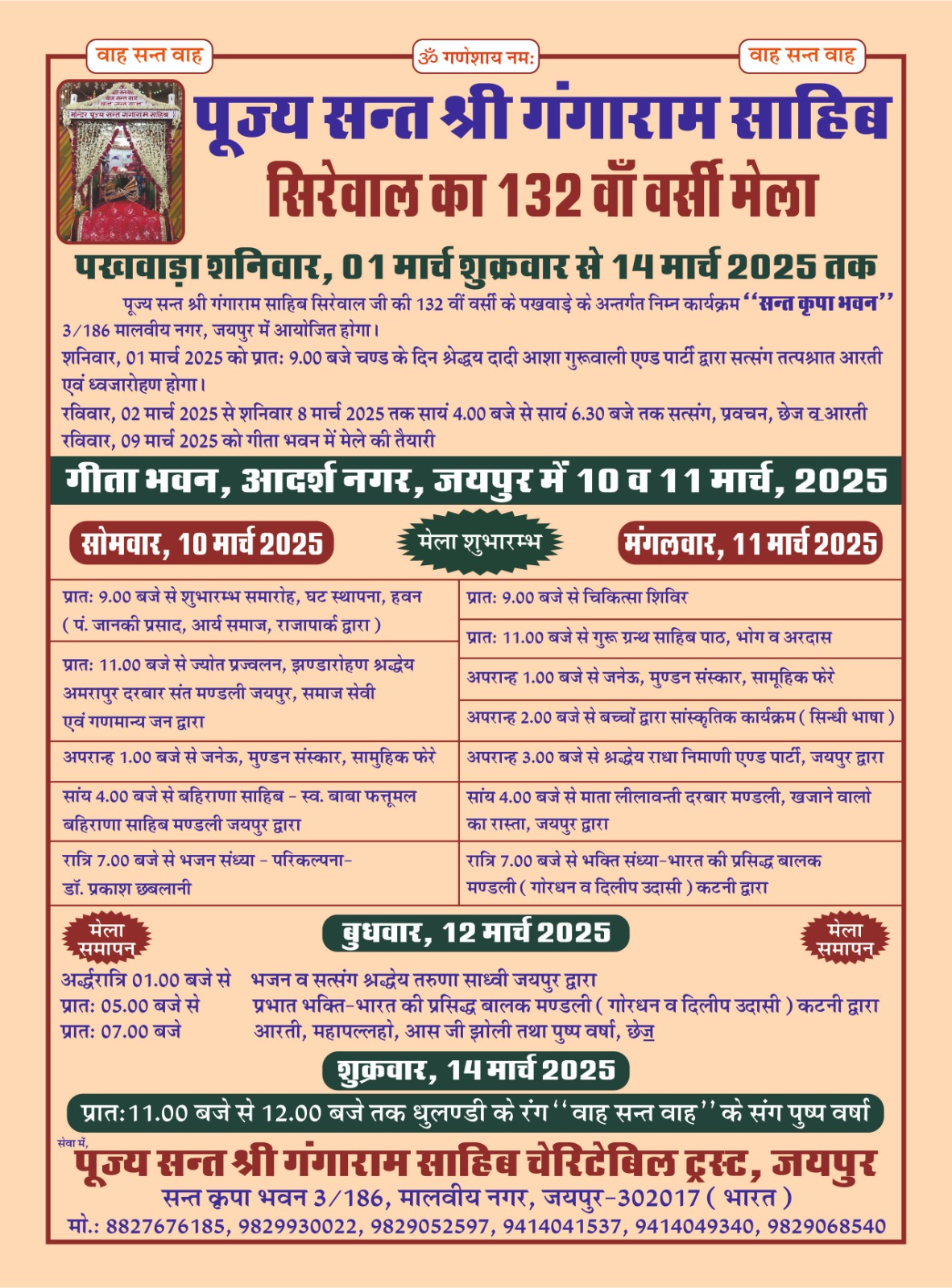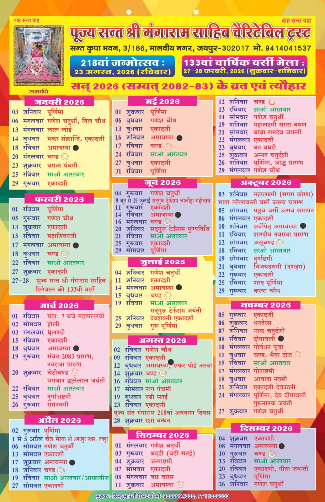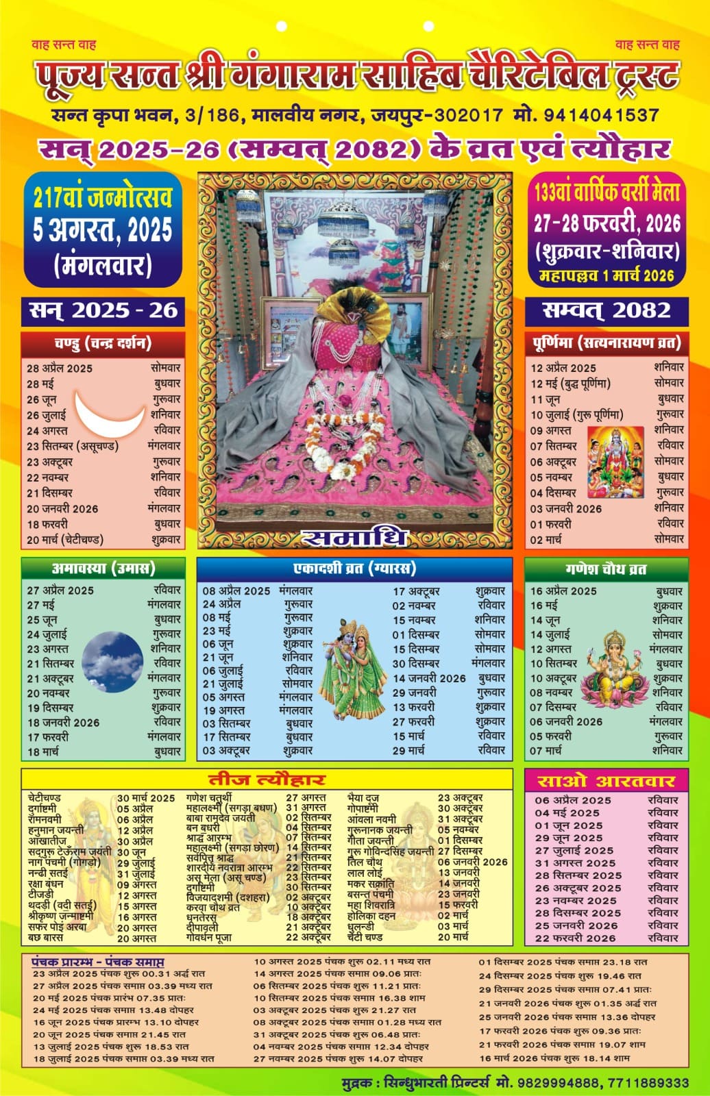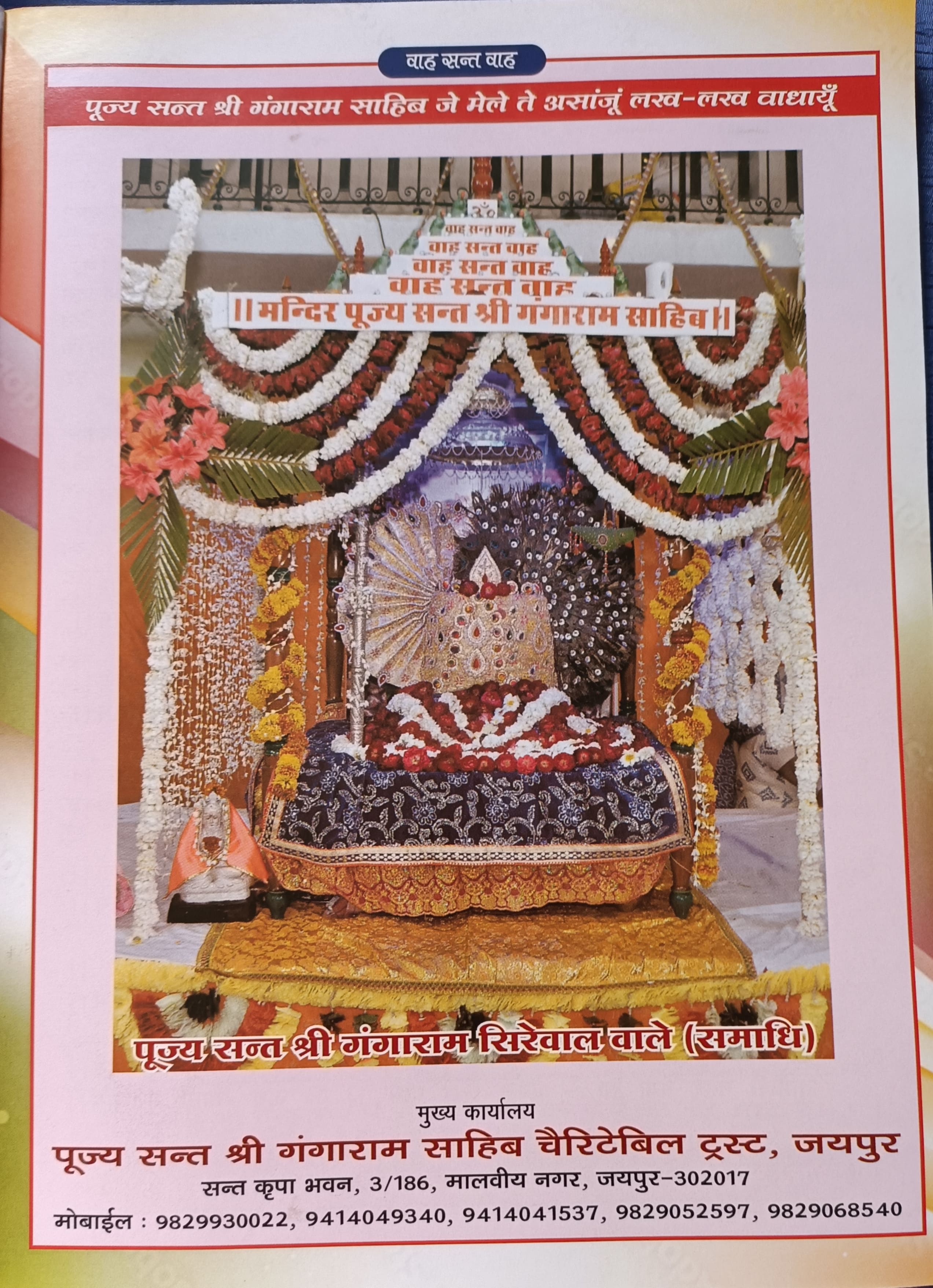 Pujya Santshri Gangaram Sahib Charitable TrustBank Name : State Bank of IndiaBank Branch : Kalgiri Hospital Parishar, Malviya Nagar, JaipurSB Account No. : 10054352036IFS Code : SBIN0006912